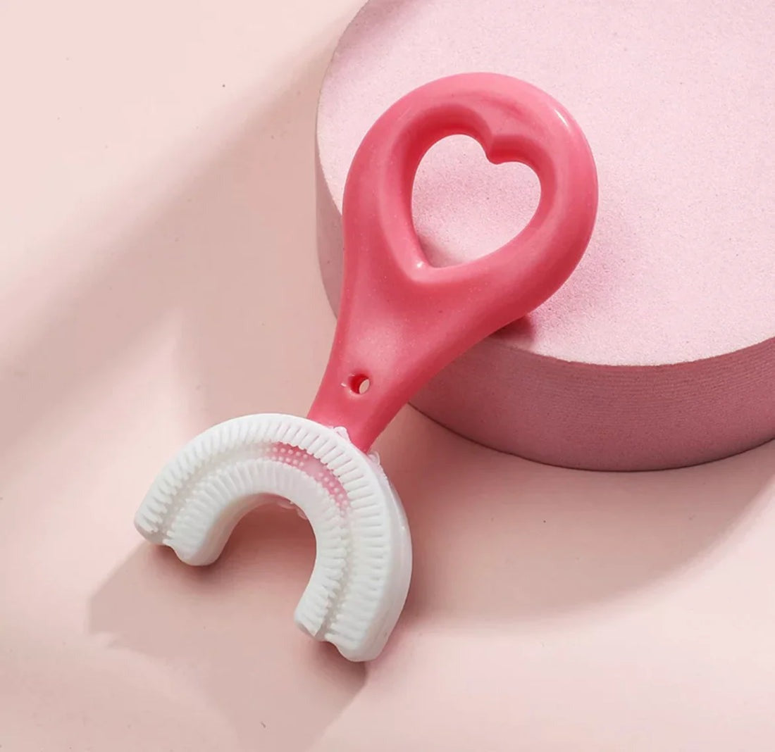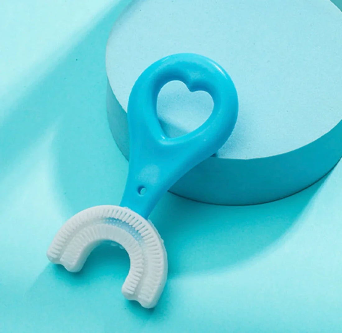 Naujasis U formos dantų šepetėlis, kurio unikalus dizainas leidžia 2 metų ir vyresniems vaikams smagiai, greitai ir lengvai valyti dantis.