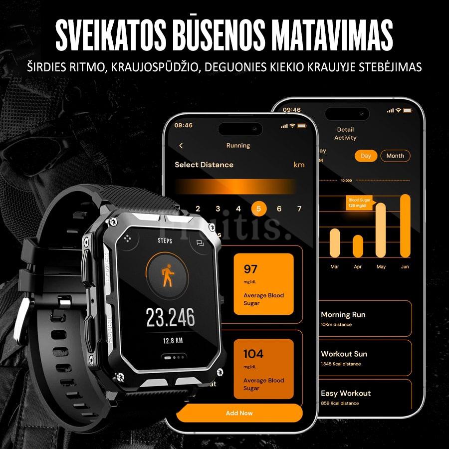 „Ąžuolas“ nėra tik patvarus – jis taip pat yra pilnai funkcionalus išmanusis laikrodis. Su integruota skambinimo funkcija galite skambinti dirbdami, neišimdami telefono iš kišenės. Daugiafunkcinės galimybės leidžia jums stebėti pranešimus, valdyti orų prognozes ir net naudoti laikrodį kaip laisvų rankų įrangą. Tai išmanusis laikrodis, kuris padeda jums būti produktyvesniam ir organizuotam, net ir sunkiausiomis darbo sąlygomis.