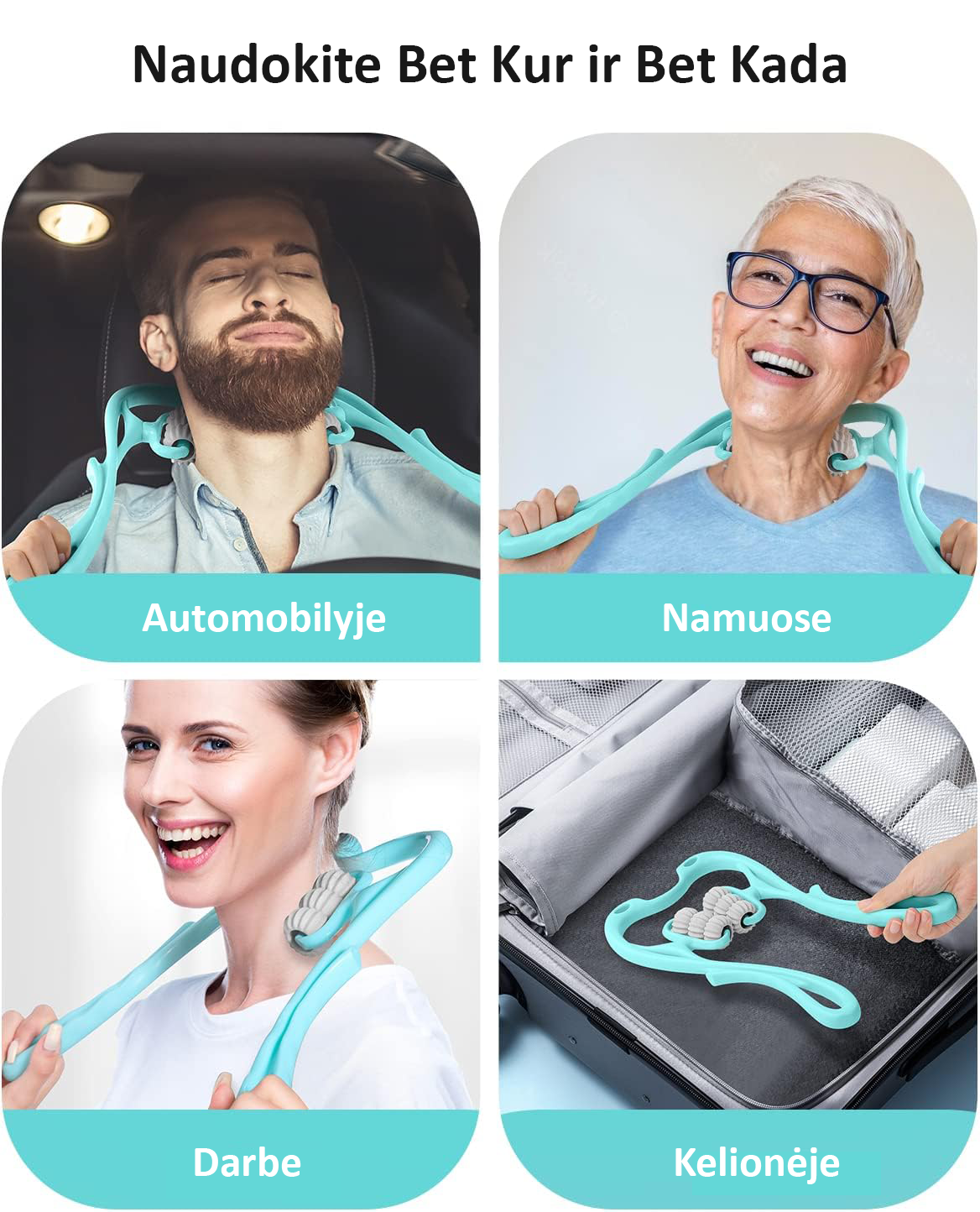 Šį kaklo masažuoklį sukūrė ir rekomendavo terapeutai, kaip veiksmingą būdą kūno skausmui malšinti, kai to labiausiai reikia. Sumokėję mažiau nei 1/5 terapeuto gydymo išlaidų, galite padėti savo kūnui bet kurioje vietoje ir bet kuriuo metu.